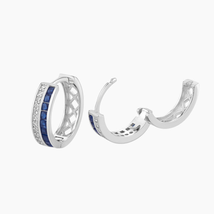 Discover the enchanting allure of our Sterling Silver Blue Spinel Baguettes and Clear CZ Huggie Earrings. These luxurious earrings feature hypnotic blue spinel baguettes alongside a mesmerizing array of pave clear cubic zirconia. Elevate your jewelry collection with this stunning, timeless accessory that promises to captivate and impress at every occasion.