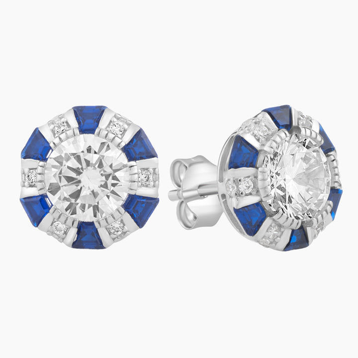 Embrace the timeless elegance of our Sterling Silver Blue Spinel Baguettes and Clear CZ Vintage Art Deco Halo Earrings. These exquisite pieces showcase captivating blue spinel baguettes surrounded by a radiant halo of clear cubic zirconia, perfectly capturing the essence of Art Deco sophistication. A true statement of luxury and refinement, these earrings will undoubtedly become a cherished addition to your collection.